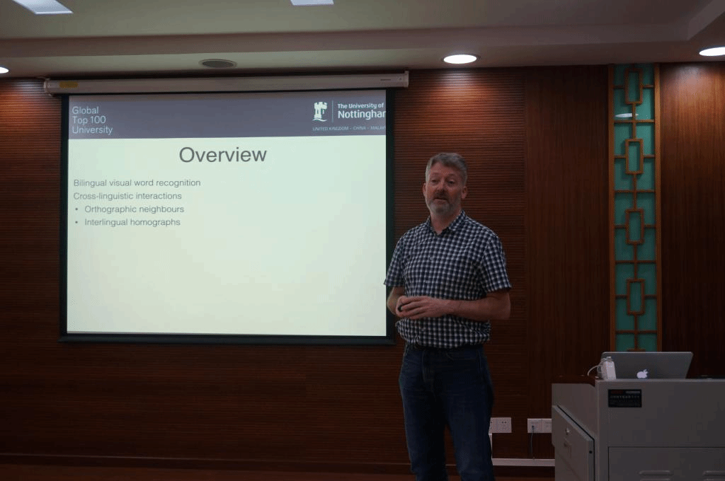 Prof. Walter van Heuven from Universityof Nottingham reported on “Word Recognition and the Bilingual Brain” on the afternoon of Dec. 6th, 2017.