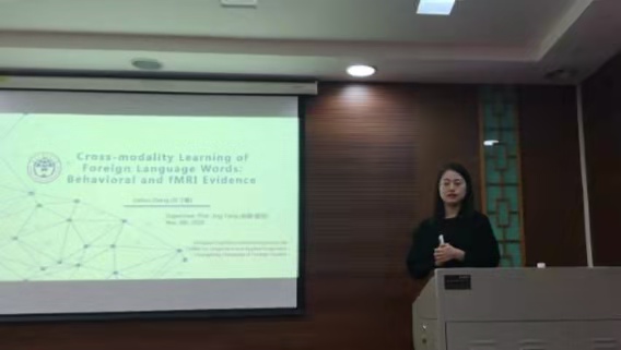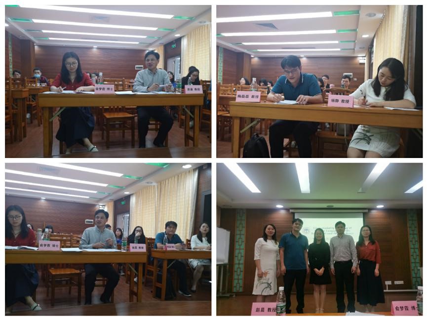On November 6, 2020, the Center for Linguistics and Applied Linguistics organized the proposal defense of the lab member Caihui Zhang, a PhD. Student from the Class of 2019 supervised by Prof. Jing Yang. The defense committee was headed by Prof. Chen Zhao at Guangdong University of Foreign Studies (GDUFS), with Prof. Leilei Mei at South China Normal University (SCNU) and Dr. Mengxia Yu at GDUFS as members, and another lab member Hongming Zhao, a PhD candidate from the Class of 2017, as the secretary of the defense.