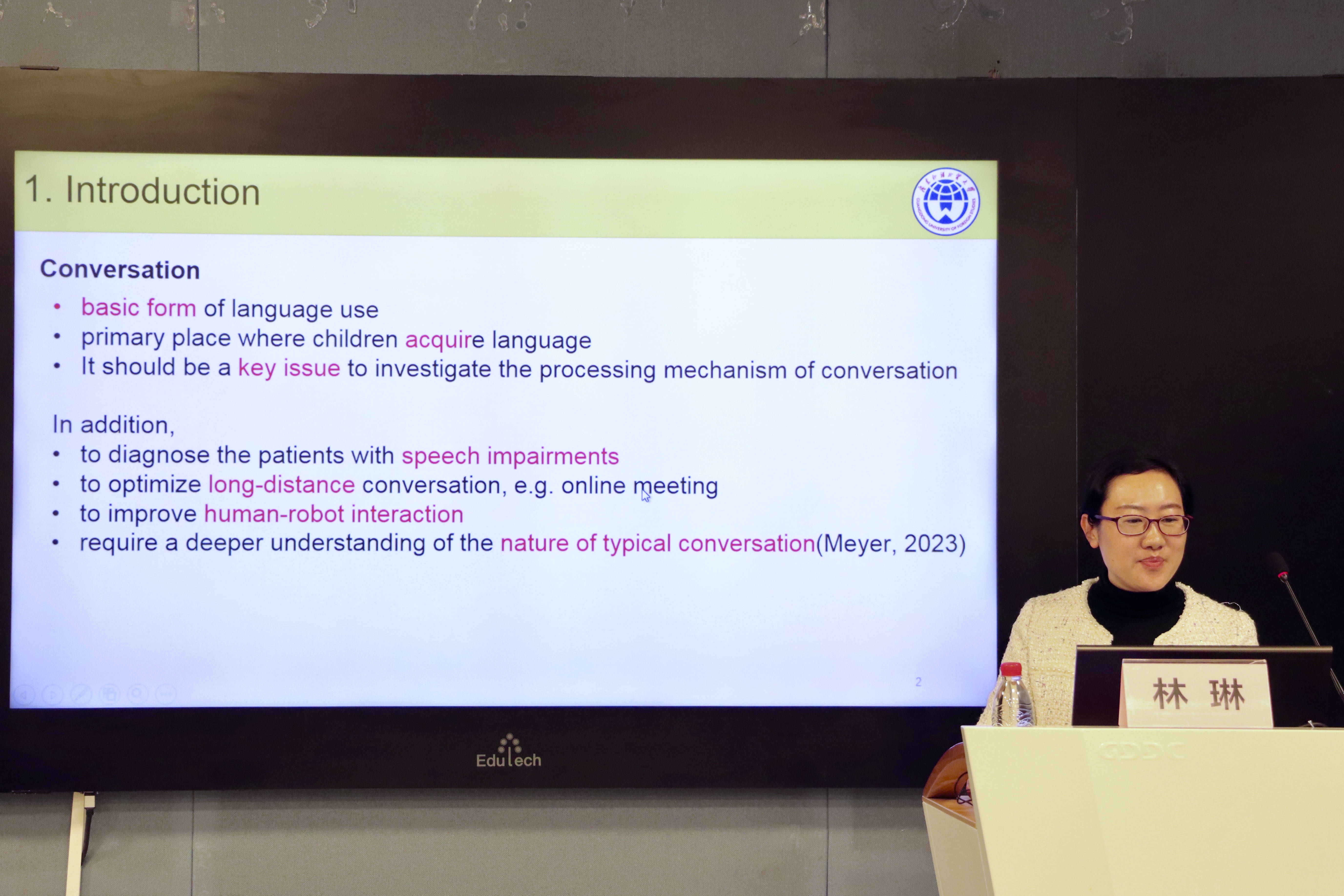 梁利娟教授以《反语使用倾向和接受度对反语加工的影响:来自自定步速阅读和ERP实验的证据》为题,汇报了其团队在反语加工方面的最新进展。该研究揭示了个人反语的使用倾向和使用接受度对反语加工的调节作用,拓展了相关理论,为进一步研究奠定了基础。