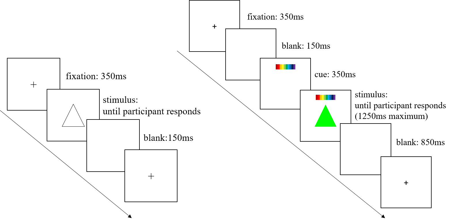 图1. 单价(左图)与双价(右图)颜色-形状转换任务的实验流程图